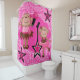 Rideau en douche Girly dans le motif rose et blanc de Paisley avec deux singes bruns adorables dans des robes de rose et de brun avec la guitare et le microphone. Il y a également deux ou trois étoiles roses et noires avec les notes musicales.