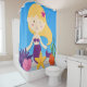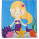 Joli et mignon rideau de douche pour les filles qui aiment l'océan et les sirènes, présente une mignonne sirène blonde, corail, algues, coquillages, et une étoile de mer sur un arrière - plan bleu vif.