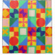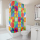 Ce rideau de douche a un design Bauhaus de carrés avec des formes étranges à l'intérieur, répété à travers le design.