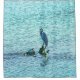 Photo minimaliste d'un héron perché sur un arbre qui n'a pas complètement submergé sous l'eau. La surface de l'eau est perturbée par le vent et les ondulations créent un fond bleu texturé. Copyright ©2018 Kimberly J Tilley.