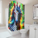 Ce rideau de douche a une licorne cool sur laquelle on peut voir une photo.