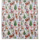 Christmas-themed pattern featuring Santa Claus, reindeer, snowmen, elves, Christmas trees, candy canes, and snowflakes on a white background