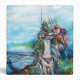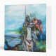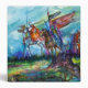 Medieval knights with horses ,colourful and expressive contemporary figurative painting in vibrant blue,red,green white,brown colours,watercolor by Alessandro Lumini 1989 Inspired from the legend of King Arthur and the Knights of the Round Table .This cool and artistic design is also a beautiful gift for Christmas and special occasions.