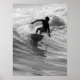 A black and white capture of someone surfing in Cocoa Beach Florida.