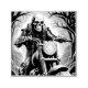 a skeleton gripped in pandemonium bike. Riding through the intertwining branches on the trail .He had a hopped-up .He has a black leather trousers and motorcycle boots And a black leather jacket with bone like design on the bilker outfit .With the sun going down behind him. Haze rising up from around him into the dark night he rids away with night stars above.