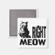 A simple but striking design featuring a drawing of a grumpy looking kitty cat, with huge letters that say RIGHT MEOW. Not later, get on it right now.... (meow), human!