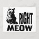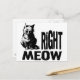 A simple but striking design featuring a drawing of a grumpy looking kitty cat, with huge letters that say RIGHT MEOW. Not later, get on it right now.... (meow), human!