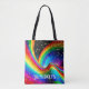 This tote bag design features a beautiful three dimensional rainbow swirl and waves on a night sky, with scattered faux gold stars. Fun and unique. Personalize it with a first or last name. Makes a great gift! Created by Simply Farmhouse Press.