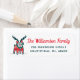 Célébrez la saison des fêtes magiques et festives avec nos étiquettes de adresse de vacances personnalisés. Amusant, dessin de bulldog français illustratif portant un pull de Noël rouge, des bouffées d'oreilles et des bois de rennes. Personnalisé avec le nom de famille, l'adresse et le monogramme initial. Toutes les oeuvres contenues dans ce étiquette de adresse de bulldog français amusant et coloré sont dessinées à la main par Moodthology. Vous pouvez customiser la taille, la police et la disposition du texte pour votre propre préférence de conception personnelle.