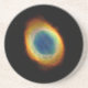 This is an image of the oval-shaped Ring Nebula, situated around 2000 light years from Earth. It was taken by the Hubble Space Telescope in 1998, and shows orange and yellow outer areas around a blue-green centre.