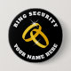 Ring security button with name of ring bearer. Small, medium and big sizes. Fun wedding gift for kids guarding the rings. Drawing of two interlocked golden welding rings.