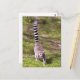 Ring-tailed lemur (Lemur catta) seen from front and walking on grass with tail in the air