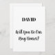 Simple, minimal, elegant design for asking "Will you be our ringbearer" with custom message and custom name text templates for you to customize!