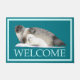 A mother Ringed Seal and her pup on an ice floe along with text reading, "WELCOME." You may choose another background colour.