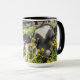 Ringer mug, 150 oz, with photographic image of a calf lying down in the fields among yellow flowers.