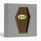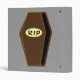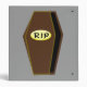 Ce classeur génial dispose d'un cercueil déplaisant en bois et doré. Le couvercle du cercueil est légèrement ouvert et ne révèle que l'obscurité à l'intérieur. La plaque d'or à l'avant du cercueil contient un éffrayant texte noir qui indique RIP, ne donnant aucune idée de qui ou de ce qui pourrait se trouver à l'intérieur. Ce cercueil amusant mais sinistre est idéal pour Halloween. L'arrière - plan gris sombre agit pour attirer l'oeil de l'observateur vers le cercueil du malheur.