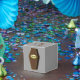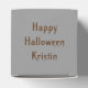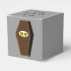 This awesome favour box features a creepy coffin made from wood with gold edging. The coffin lid is slightly open revealing only darkness within. The gold plaque on the front of the coffin has spooky black text on it that says RIP, giving no clue who or what might be lurking inside. This fun yet sinister coffin is ideal for Halloween. The bleak grey background acts to draw the eye of the observer towards the coffin of doom. There is customizable text on the top lid so it can be personalized with text of your choice.