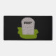 Ce somptueux tapis de bureau comporte une pierre tombale grise avec RIP dans le texte noir coulant dessus, debout sur un coin d'herbe verte. L'arrière - plan est noir, et il ne respecte pas cette conception morbide.