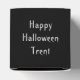 This awesome favour box features a grey tombstone with RIP in dripping black text on it, standing on a patch of green grass. Befitting of this morbid design the background is black. There is customizable text on the top lid so it can be personalized with text of your choice.