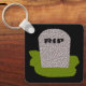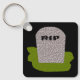This design features a grey tombstone with RIP in dripping text on it, standing on a patch of green grass. Befitting of this morbid design the background is black. There is custom text on the back so you can include a message of your choice. This keychain would make a great alternative to candy this Halloween for all your trick or treat guests.