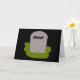This greeting card features a gray tombstone with RIP in dripping text on it, standing on a patch of green grass. Befitting of this morbid design the background is black. The inside of the card is blank so you can either hand write your message or take advantage of the "customize it" button. By clicking on this button you have the option to type your own text in the card, with the freedom to choose from lots of different colors and fonts. You can also change the background color of the inside of the card if you would like to.