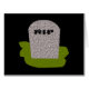 This greeting card features a grey tombstone with RIP in dripping text on it, standing on a patch of green grass. Befitting of this morbid design the background is black. The inside of the card is blank so you can either hand write your message or take advantage of the "customize it" button. By clicking on this button you have the option to type your own text in the card, with the freedom to choose from lots of different colours and fonts. You can also change the background colour of the inside of the card if you would like to.