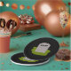 This awesome paper party plate features a grey tombstone with RIP in dripping black text on it, standing on a patch of green grass. Befitting of this morbid design the background is black.