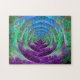 Here we have a more traditional fractal which depicts the ultimate ripple effect. In the centre of the image, you can see circles, which get small and smaller, creating a tunnel effect. The colours themselves also create a tunnel effect. The "ceiling" is blue, the "walls" are green, and the "floor" is purple. This design is perfect for someone who likes optical illusions or traditional fractal images.