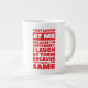 Jumbo Certains jours, une tasse de joe de taille régulière ne le fera pas. Quand vous avez besoin d'une dose de caféine en plus, utilisez votre tasse XL de Zazzle. Peut contenir jusqu'à 591 ml. Idéal pour des soupes, céréales, glaces et du chili aussi ! Cette tasse géante à une anse en forme de C pour une utilisation confortable. Dimensions : Hauteur : 4,5" Diamètre : 3,9" Capacité : 20 onces Micro-ondes et lave-vaisselle sans danger Construction céramique forte Satisfait ou dépasse les exigences de la FDA en matière de salubrité des aliments et des boissons Imprimé à la demande dans Reno, NV Designer Astuce : Pour assurer une impression de la plus haute qualité, veuillez noter que l’aire de conception personnalisable de ce produit mesure 4 po x 10,5 po