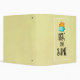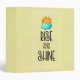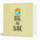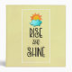 A binder with a cute typographical design. A fluffy cloud and an orange sun set on a light yellow background. Rise and Shine written in a cool trendy font.