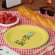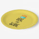 Paper plate with a cute typographical design. A fluffy cloud and an orange sun.