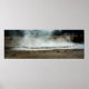 A photograph of steam rising from a geyser in Yellowstone National Park.