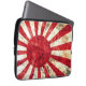 Laptop sleeve with distressed-style Japanese rising sun flag design.