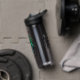 Water bottle to help spread awareness for Bipolar Disorder with a black, white and green striped awareness ribbon. An inspirational quote with the words, "Rising through the highs and lows."