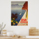 Travel poster showing bird's-eye view of a boat on Lake Garda, with a colorful lemon tree, and mountains in the distance.
