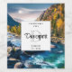 Personalized wine making bottle labels with a scenic photograph featuring tree covered mountains in autumn colours. A vibrant river flows around a multitude of rocks.