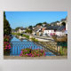 River Oust seen from bridge, part of canal Nantes at Brest, and flowers at Josselin, a commune in the Morbihan department in Brittany in north-western France
