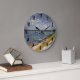 This clock looks great in my master bathroom where I have Impressionist tile and prints by Impressionist artists. Since the clock is protected by plexiglas, moisture will bot be a problem. This item is decorative and functional. I would highly recommend this product. The picture is printed clearly and the numbers are very readable. The colors are crisp and attractive.