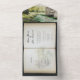 Ce joli design mariage de style vintage présente une peinture vintage d'un château au bord de la rivière, à la fois comme illustration sur la RSVP détachable, ainsi qu'une belle pièce de wraparound. L'écriture élégante se penche sur la beauté du conte de fées, créant une faire-part de mariage mémorable et unique.