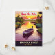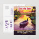 Invitation de mariage à la rivière Myakka pour sauver la date, carte postale de voyage. Bateau de pêche sur la rivière au beau coucher de soleil d'été.