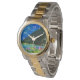 Very good quality watch that looks good whether dressing up or down. The band is sturdy. The watch is rather large so might not work for smaller folks. Recommended as a good gift. Printing is just a touch light but adds a nice touch of personalization.