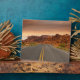 A stunning landscape photo of a sunset on a road trip.