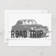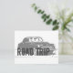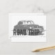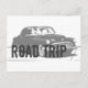 Vintage American Car in grayscale with "Road Trip" grunge style text overlay