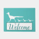 This contemporary welcome doormat design features a roadrunner bird and three baby roadrunner birds.