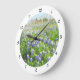 Along a back road in Texas, cheery bluebonnets fill the roadside verge as far as the eye can see. A typical Texas barbed wire fence creates a backdrop to this rural scene. This clock features a digital watercolor painting, based on a photograph by Jayne Wilson
