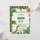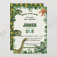 This high-quality, fully customizable invitation is designed to make party planning simple and memorable. It perfectly captures the fun and wonder of a jungle adventure, ideal for any baby boy or girl turning one. The reverse side features a complementary deep green pattern with playful yellow details (a dinosaur footprints or party hats pattern) that adds an extra touch of thematic charm. Start your jungle journey right—send out this unique and unforgettable 1st birthday invitation to family and friends today!