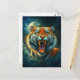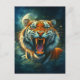 A captivating image of a roaring tiger set against a backdrop of a moonlit jungle. The tiger's eyes glow with an eerie intensity, while the moonlight casts dramatic shadows on its fur.