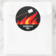 Roasting marshmallow stick on bonfire custom Classic Round Sticker. Modern design with camp fire flames. Great for BBQ party, camping and more. Personalize with your own text.