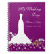 Robe de mariage, floral blancs et remous sur un carnet magenta pourpre de wedding planner d'arrière - plan. Vous pouvez ajuster le texte selon vos conditions.