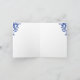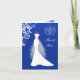 Élégante robe de mariée, volutes et lustre sur fond bleu royal Carte de remerciement de mariage